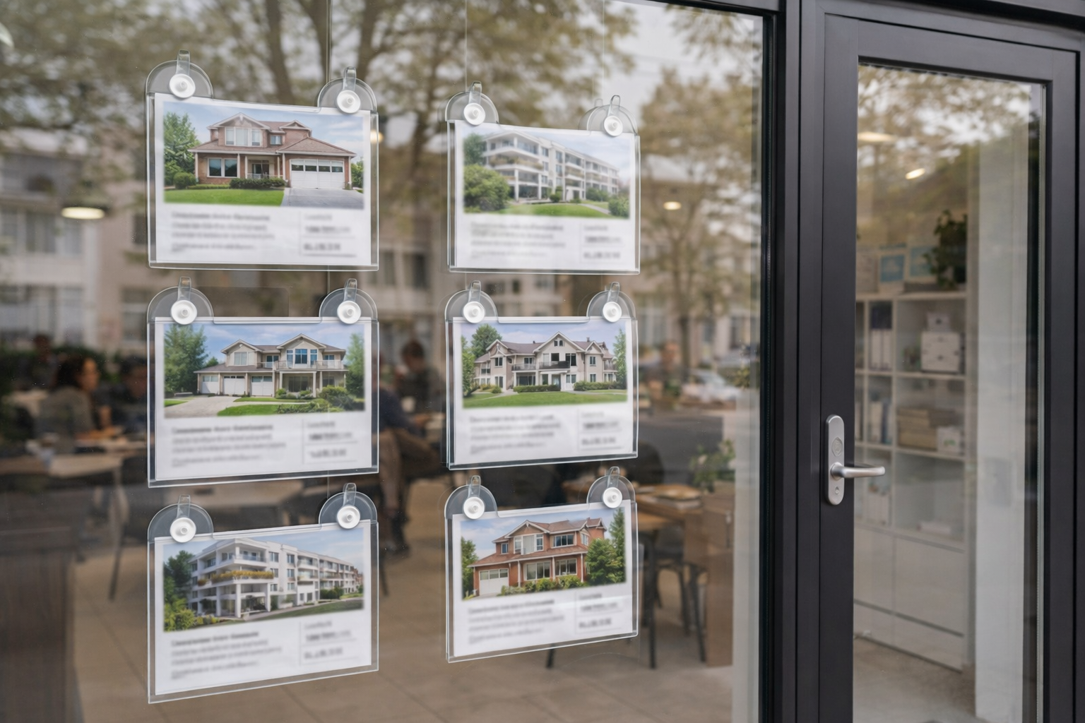 2) Агенции за недвижими имоти – офертите на витрината, без лепене