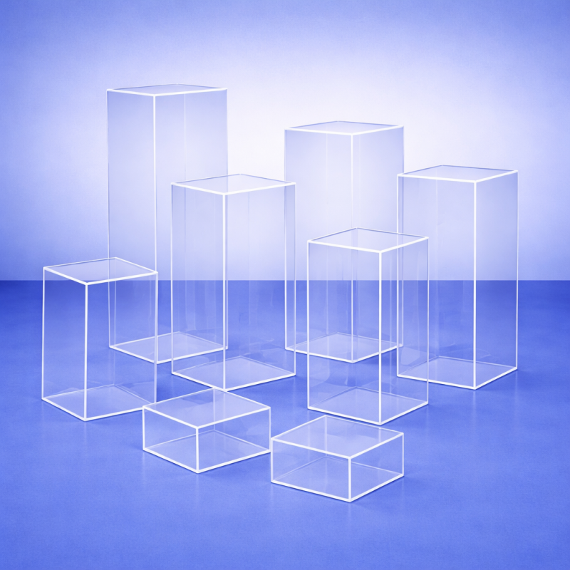 Прозрачните плексигласови масички и подиуми са създадени за професионално представяне на продукти, декорации и експозиции в търговски обекти, витрини, галерии и събития.